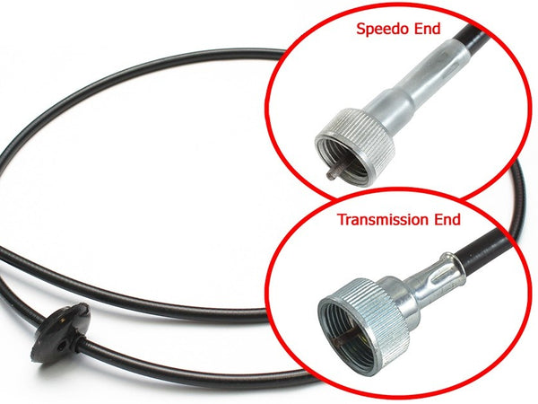 High quality reproduction speedometer cable to suit all TorqueFlite 727 & 904 automatic transmissions fitted to various RV1-CM models. Comes complete with factory rubber speedo cable grommet pre-fitted. Both ends screw in to transmission & dash cluster.